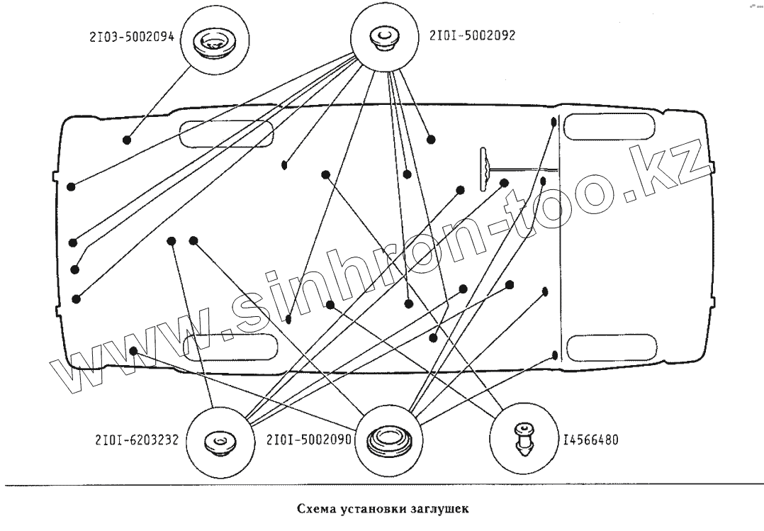 Каталог запасных частей к технике: ВАЗ-2106. Схема установки заглушек