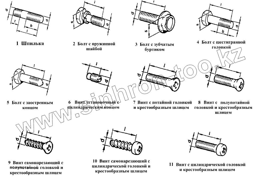 Каталог запасных частей к технике: ВАЗ-2106. Шпильки, болты, винты
