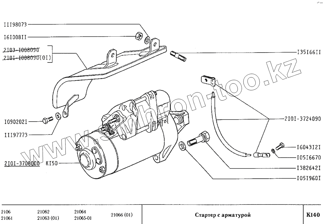 Каталог запасных частей к технике: ВАЗ-2106. Стартер с арматурой