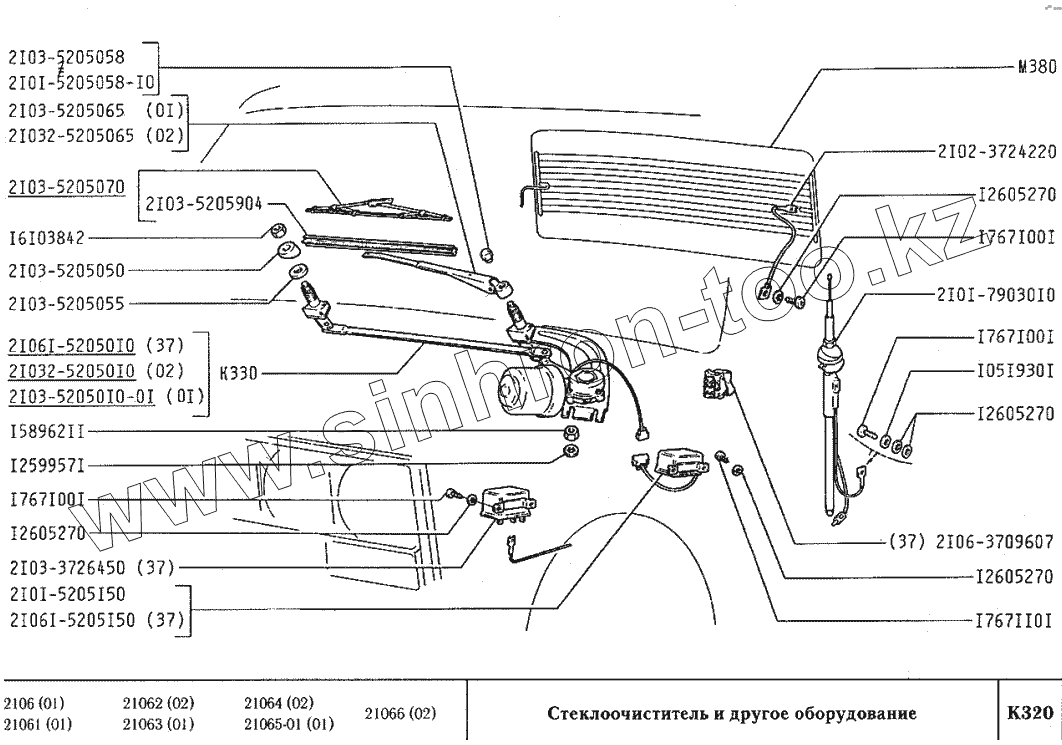 Каталог запасных частей к технике: ВАЗ-2106. Стеклоочиститель и другое оборудование
