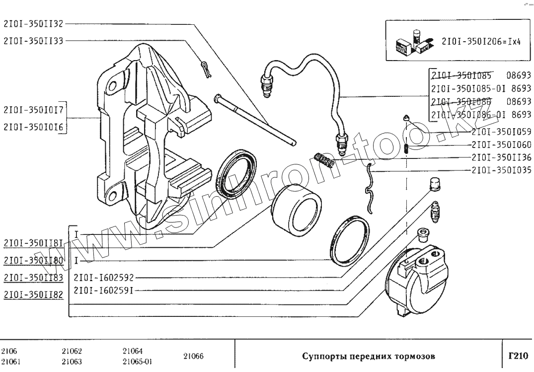 Каталог запасных частей к технике: ВАЗ-2106. Суппорты передних тормозов