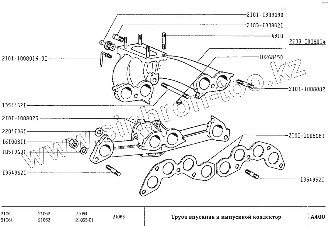 Каталог запасных частей к технике: ВАЗ-2106. Труба впускная и выпускной коллектор