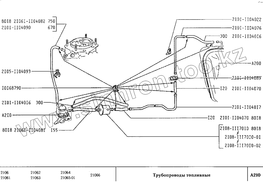 Каталог запасных частей к технике: ВАЗ-2106. Трубопроводы топливные