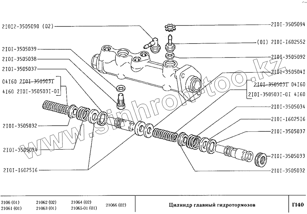 Каталог запасных частей к технике: ВАЗ-2106. Цилиндр главный гидротормозов