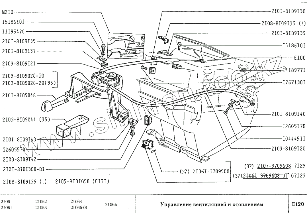 Каталог запасных частей к технике: ВАЗ-2106. Управление вентиляцией и отоплением