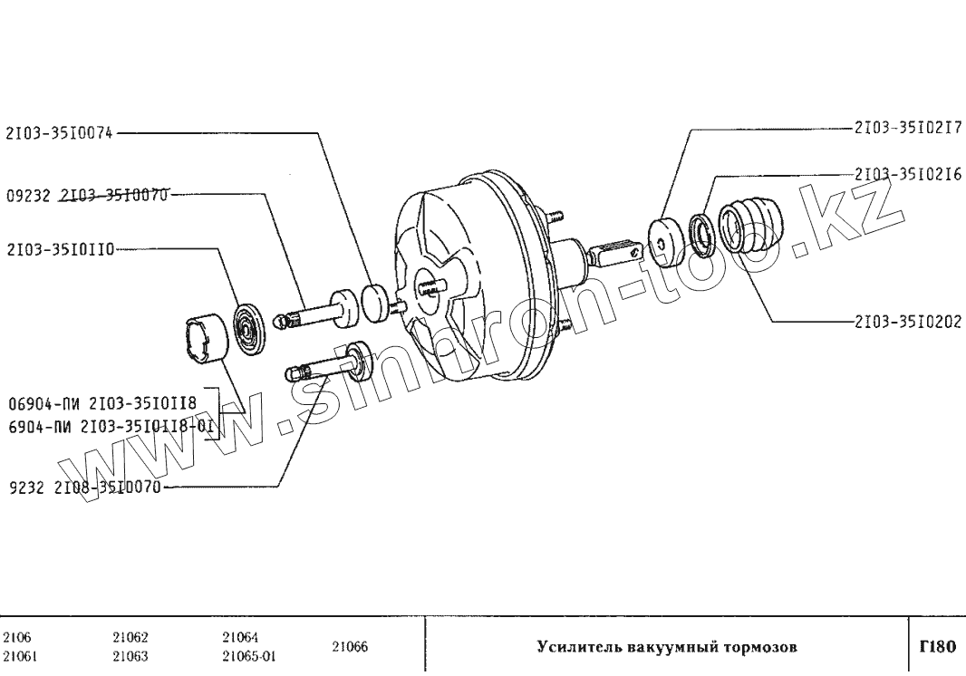 Каталог запасных частей к технике: ВАЗ-2106. Усилитель вакуумный тормозов