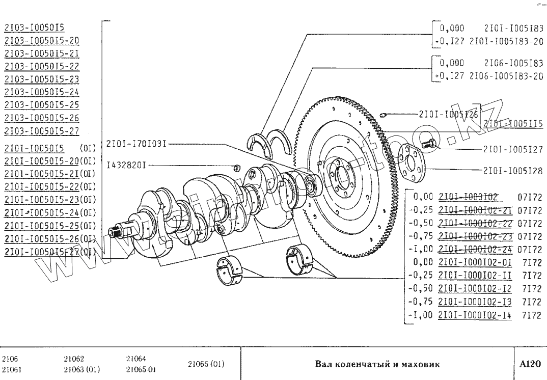 Каталог запасных частей к технике: ВАЗ-2106. Вал коленчатый и маховик