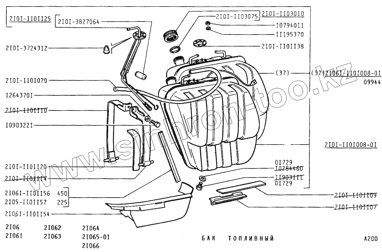 Каталог запасных частей к технике: ВАЗ-2106. Бак топливный