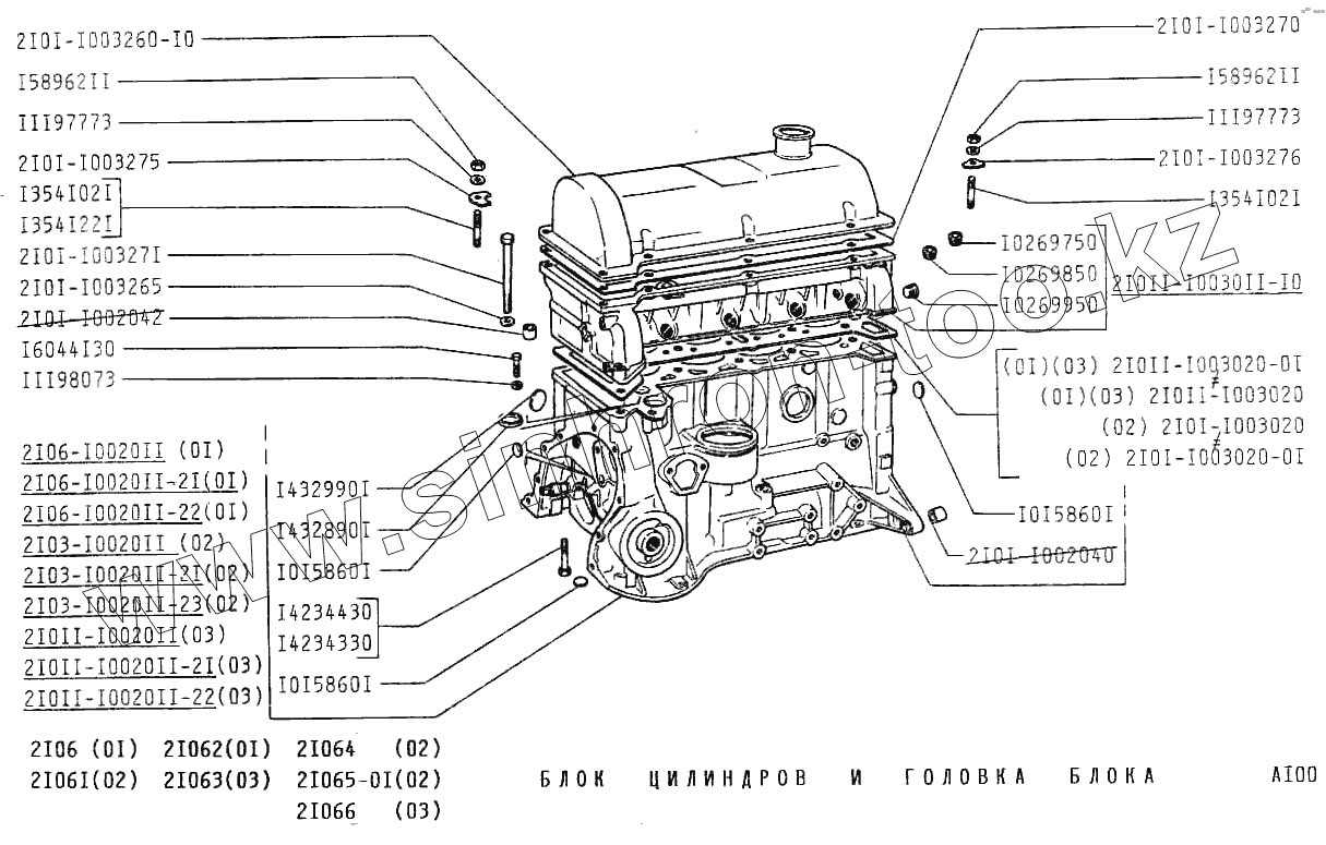 Каталог запасных частей к технике: ВАЗ-2106. Блок цилиндров и головка блока