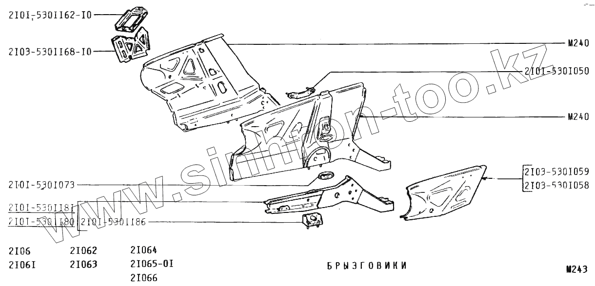 Каталог запасных частей к технике: ВАЗ-2106. Брызговики