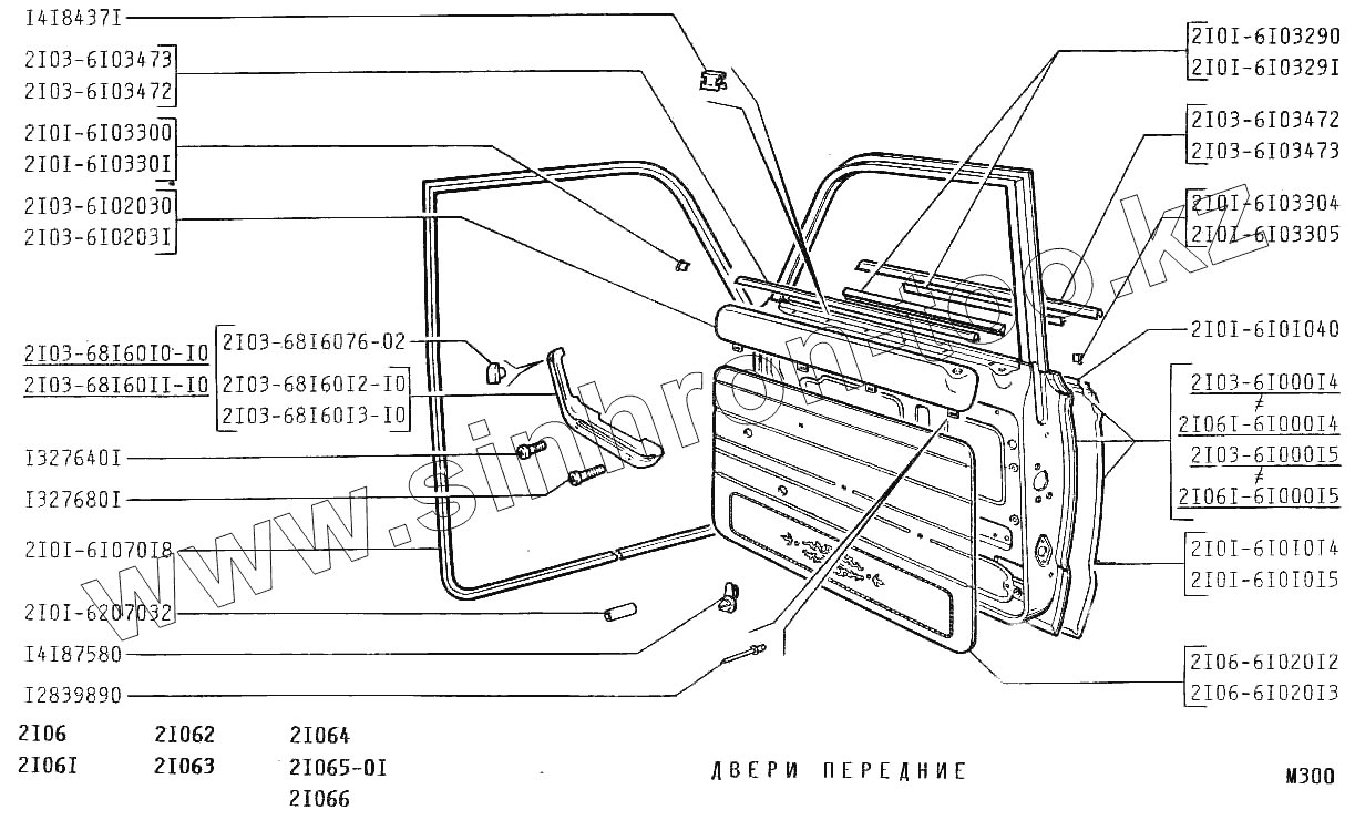 Каталог запасных частей к технике: ВАЗ-2106. Двери передние