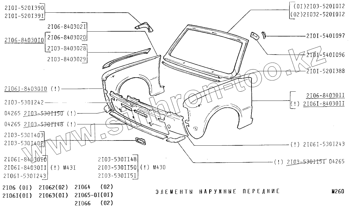 Каталог запасных частей к технике: ВАЗ-2106. Элементы наружные передние