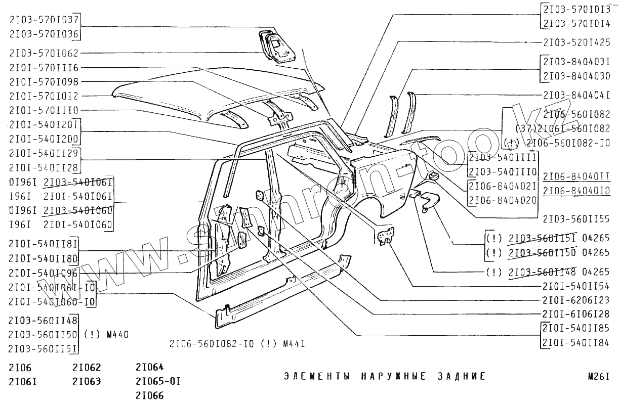 Каталог запасных частей к технике: ВАЗ-2106. Элементы наружные задние