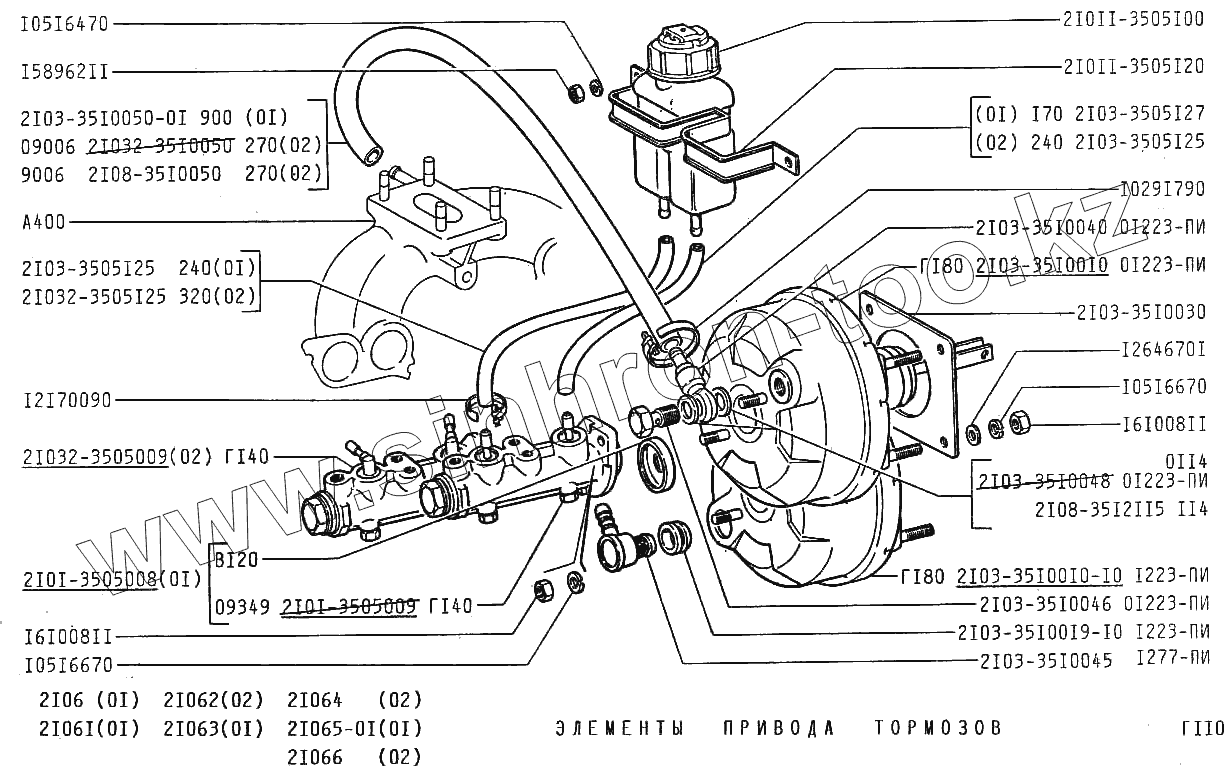 Каталог запасных частей к технике: ВАЗ-2106. Элементы привода тормозов