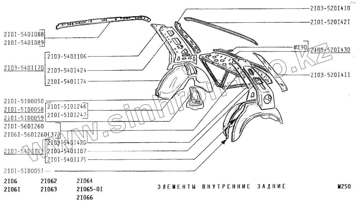 Каталог запасных частей к технике: ВАЗ-2106. Элементы внутренние задние
