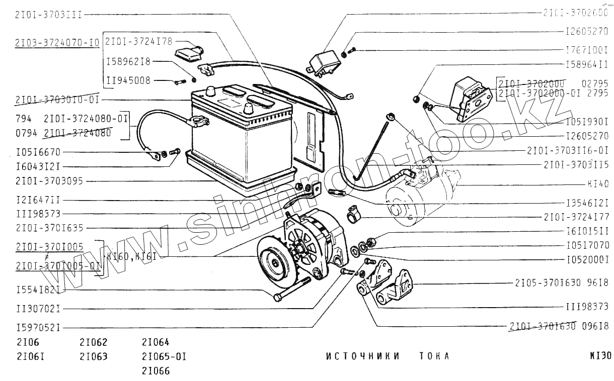 Каталог запасных частей к технике: ВАЗ-2106. Источники тока