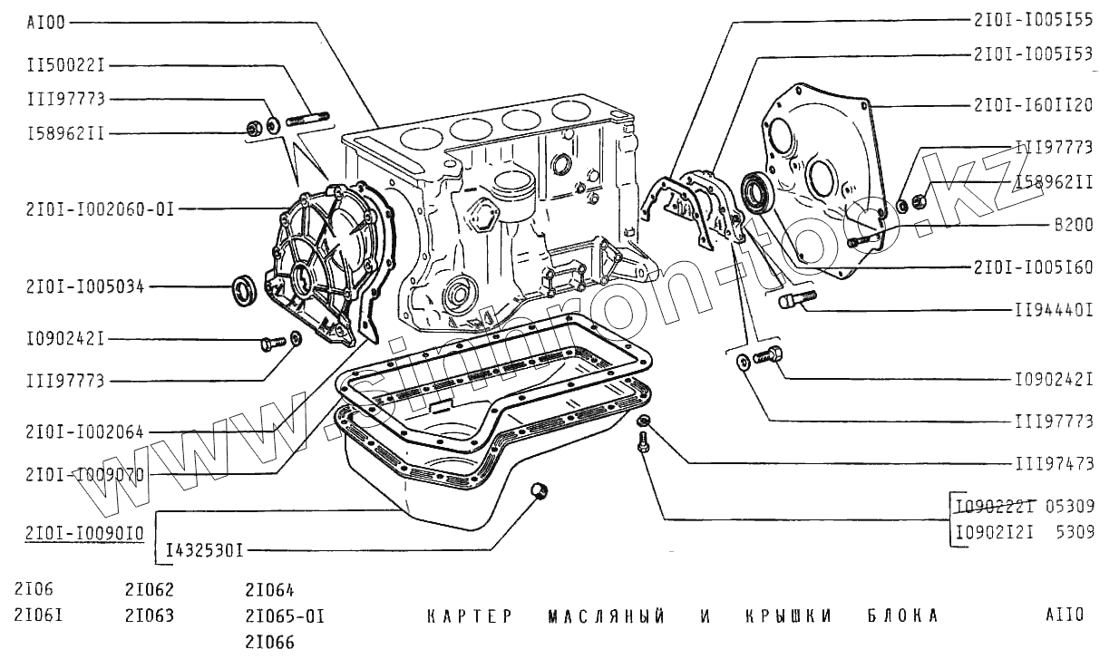 Каталог запасных частей к технике: ВАЗ-2106. Картер масляный и крышки блока
