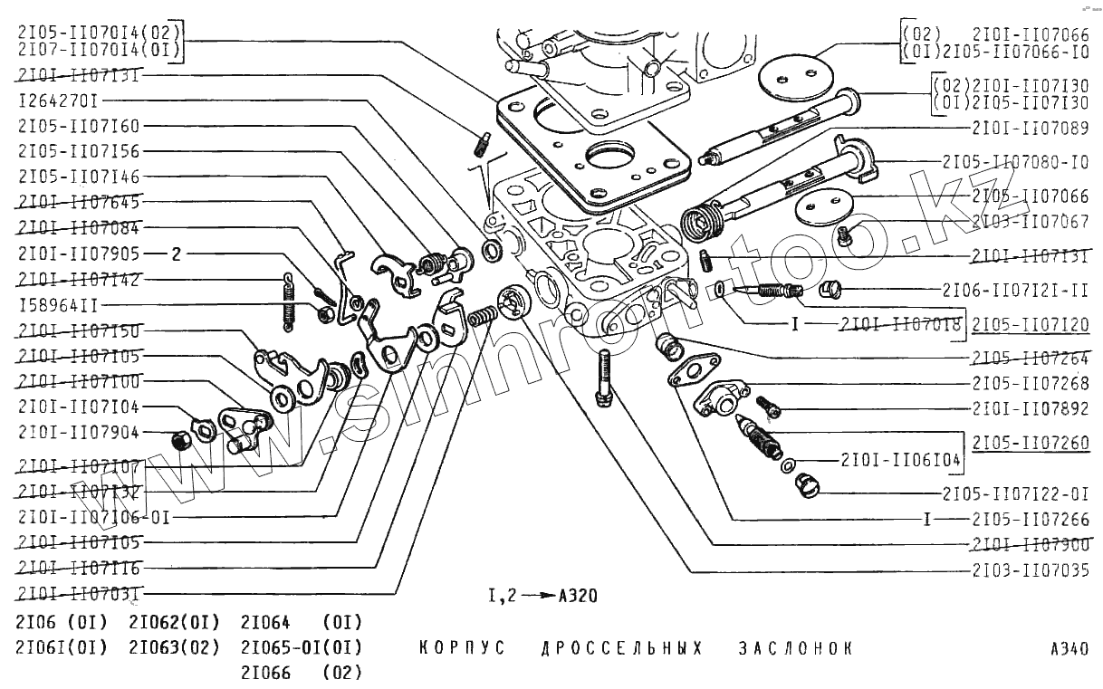 Каталог запасных частей к технике: ВАЗ-2106. Корпус дроссельных заслонок