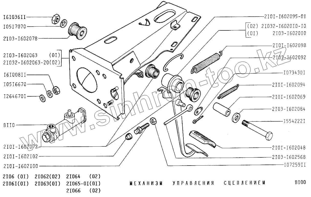 Каталог запасных частей к технике: ВАЗ-2106. Механизм управления сцеплением