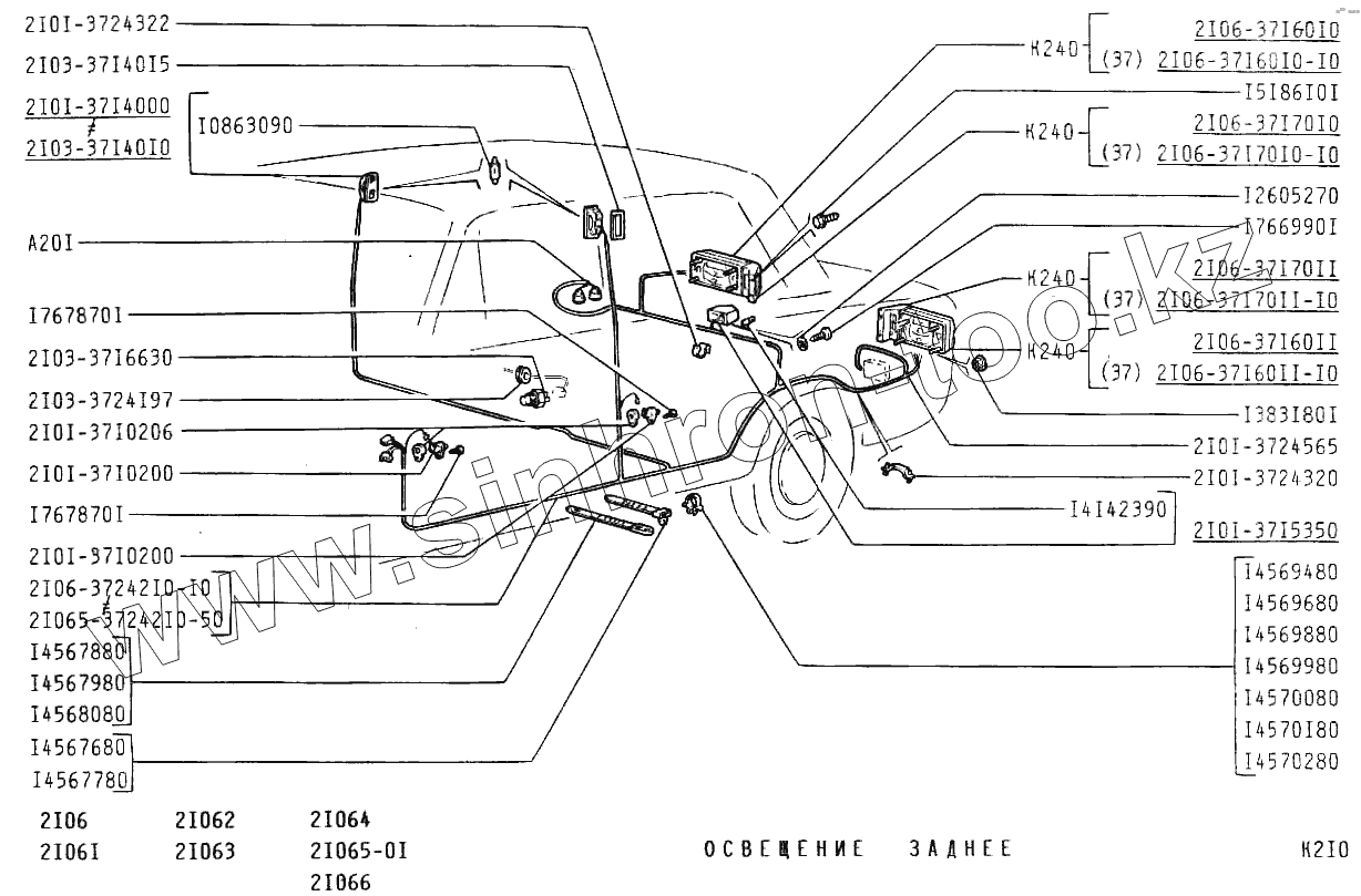 Каталог запасных частей к технике: ВАЗ-2106. Освещение заднее