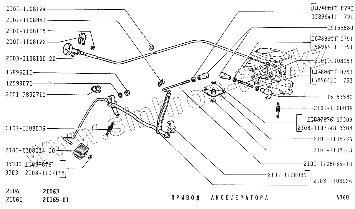 Каталог запасных частей к технике: ВАЗ-2106. Привод акселератора