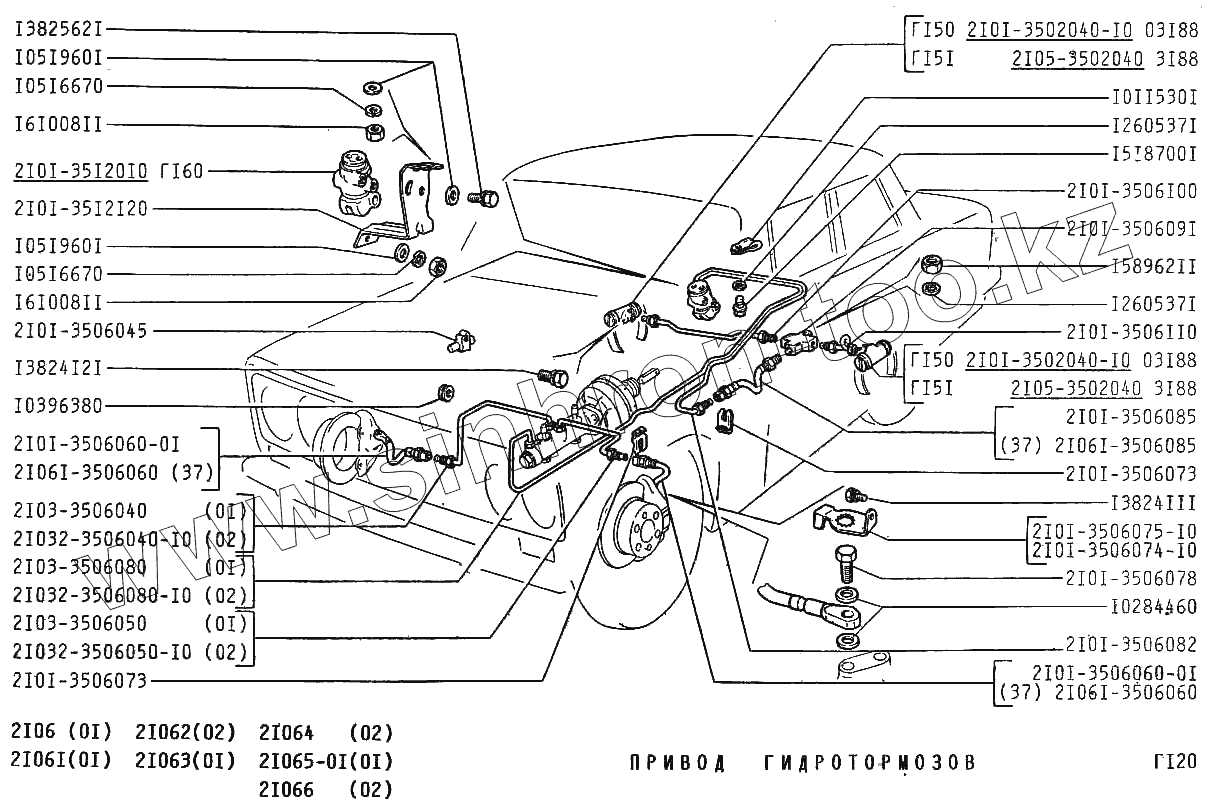 Каталог запасных частей к технике: ВАЗ-2106. Привод гидротормозов