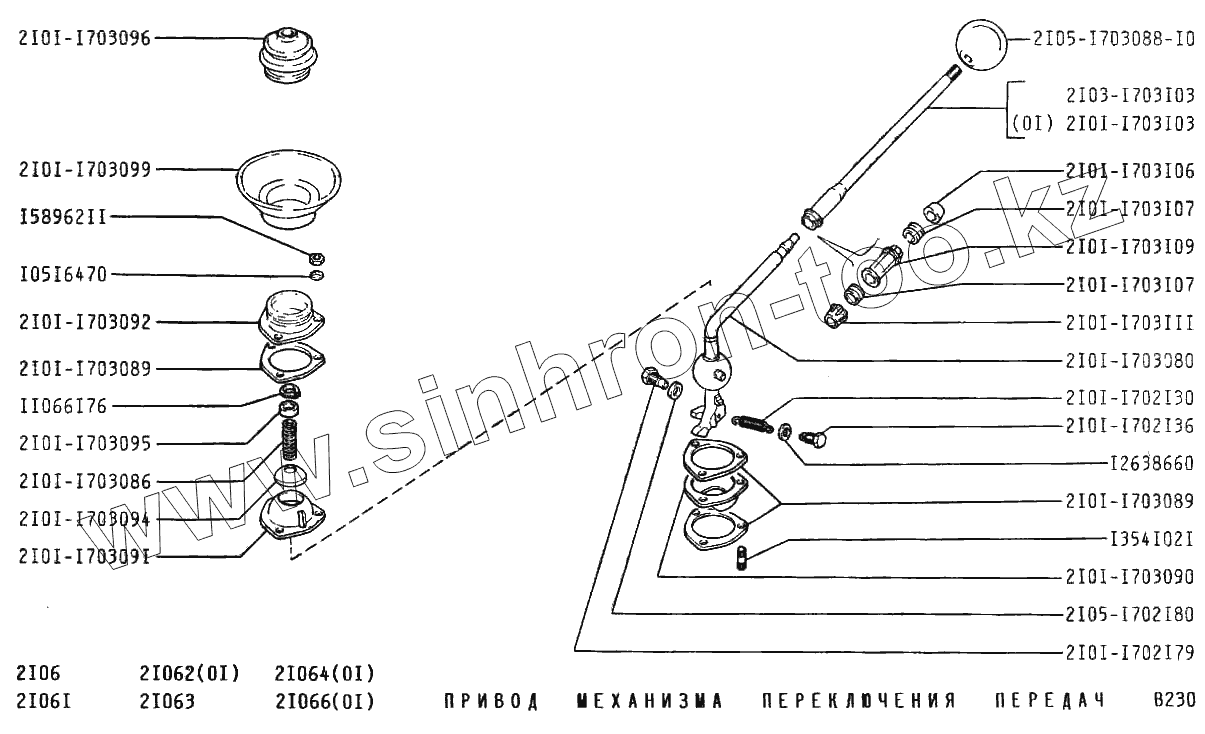 Каталог запасных частей к технике: ВАЗ-2106. Привод механизма переключения передач