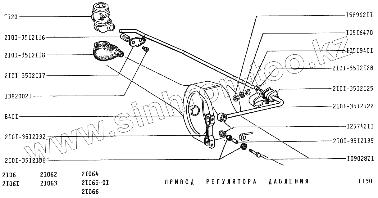 Каталог запасных частей к технике: ВАЗ-2106. Привод регулятора давления