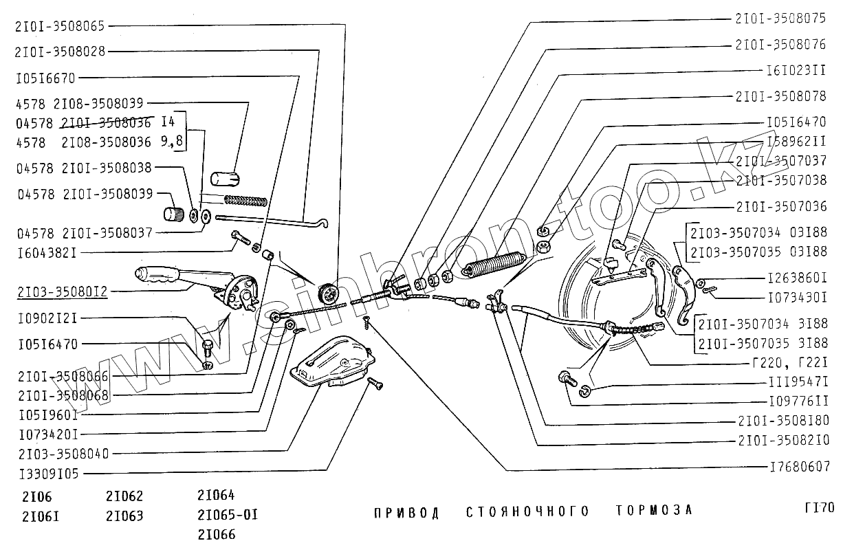 Каталог запасных частей к технике: ВАЗ-2106. Привод стояночного тормоза