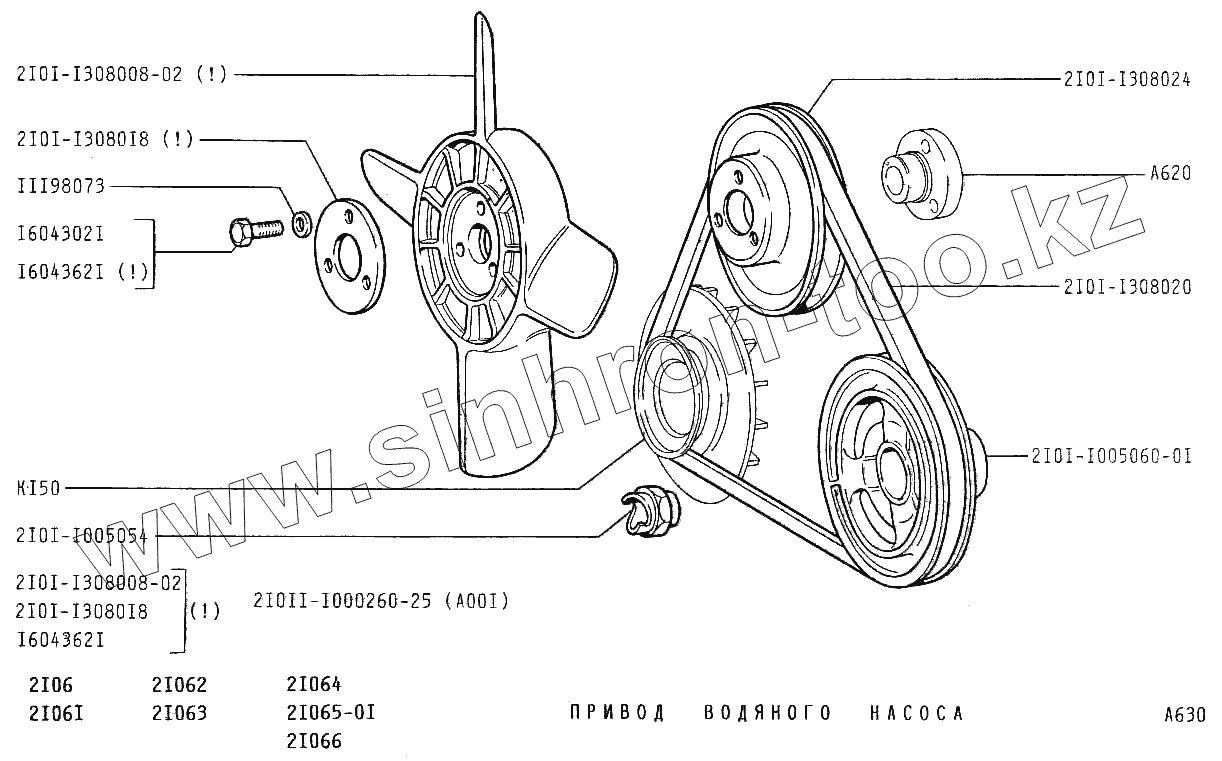 Каталог запасных частей к технике: ВАЗ-2106. Привод водяного насоса