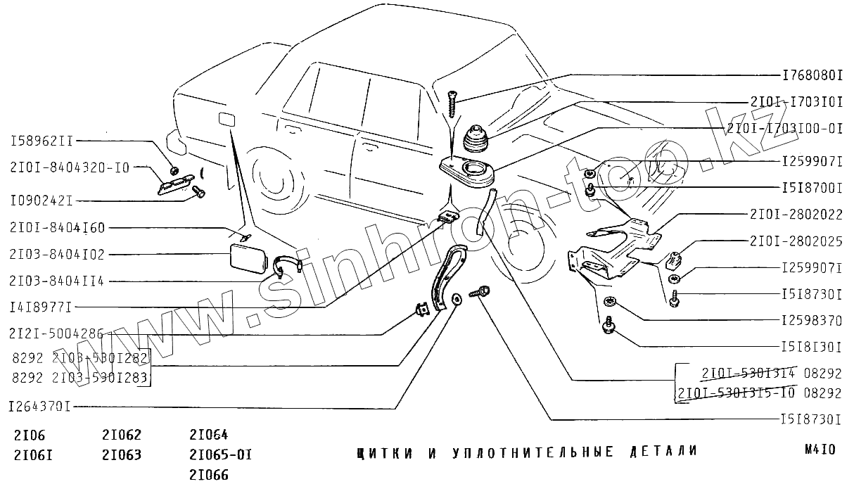 Каталог запасных частей к технике: ВАЗ-2106. Щитки и уплотнительные детали