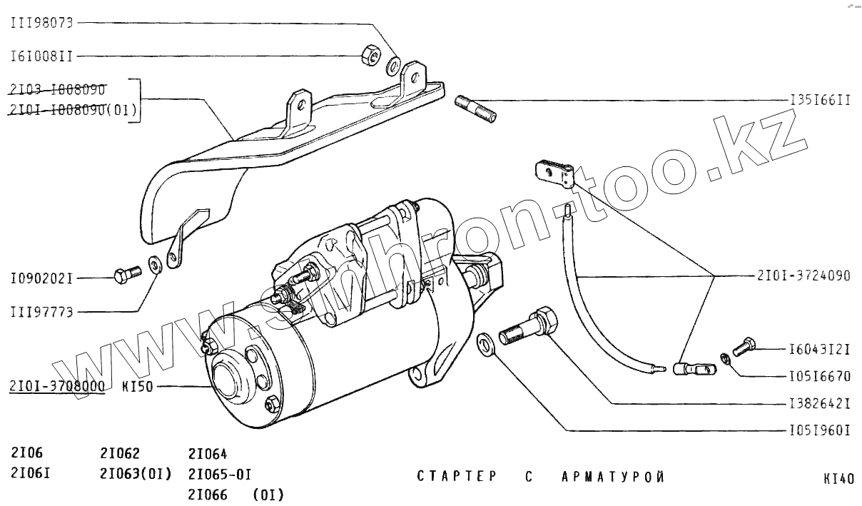 Каталог запасных частей к технике: ВАЗ-2106. Стартер с арматурой