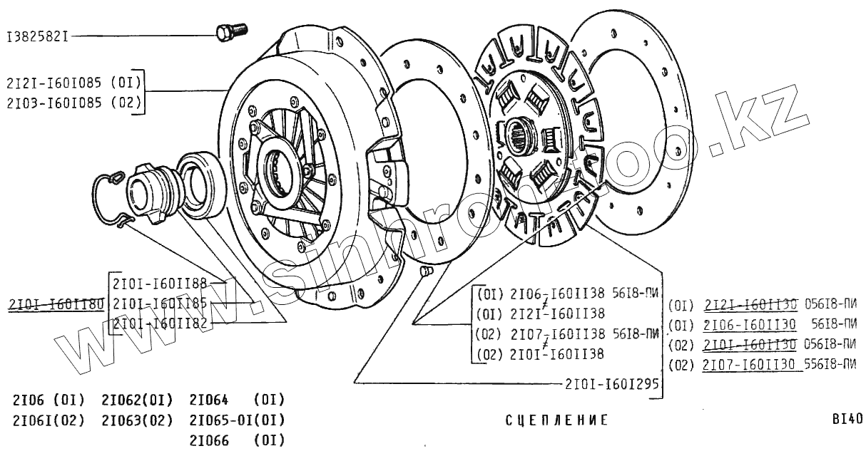 Каталог запасных частей к технике: ВАЗ-2106. Сцепление