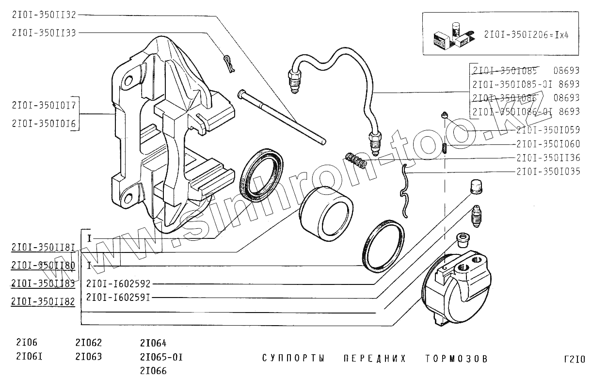 Каталог запасных частей к технике: ВАЗ-2106. Суппорты передних тормозов