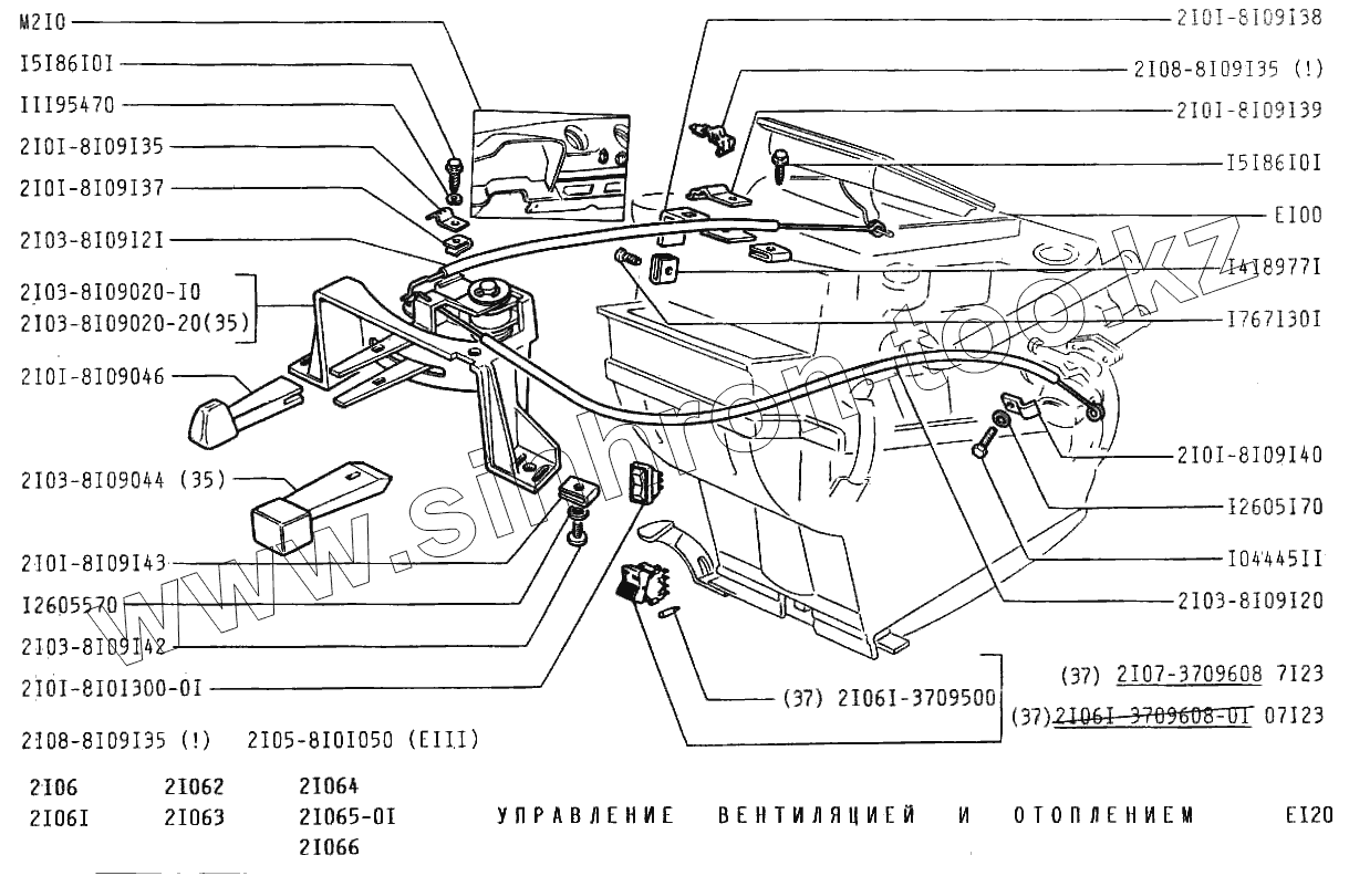 Каталог запасных частей к технике: ВАЗ-2106. Управление вентиляцией и отоплением