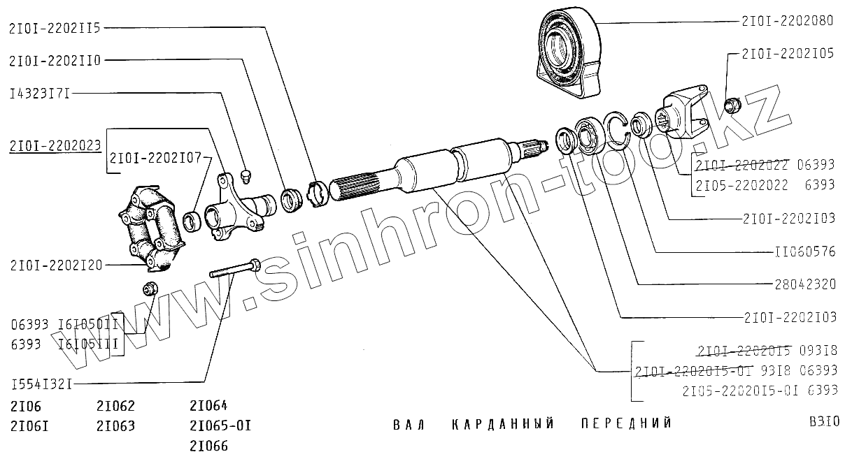 Каталог запасных частей к технике: ВАЗ-2106. Вал карданный передний
