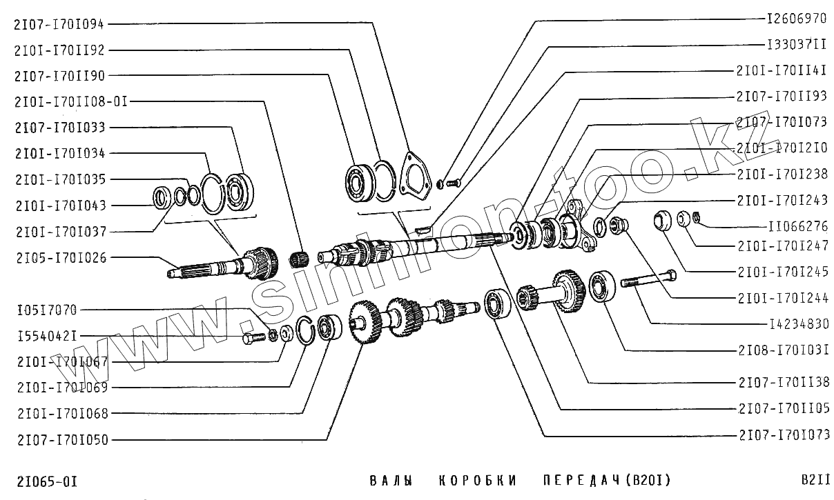 Каталог запасных частей к технике: ВАЗ-2106. Валы коробки передач (В201)