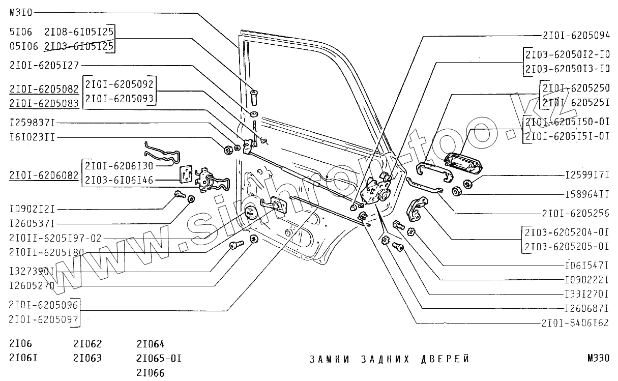 Каталог запасных частей к технике: ВАЗ-2106. Замки задних дверей