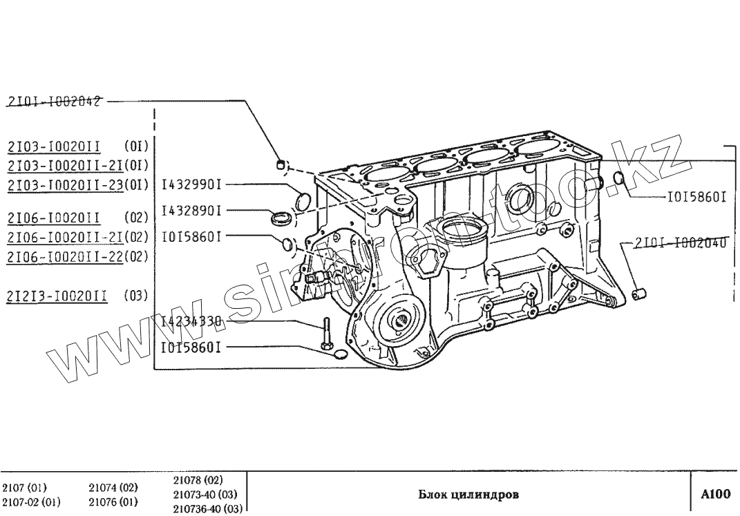 Каталог запасных частей к технике: ВАЗ-2107. Блок цилиндров