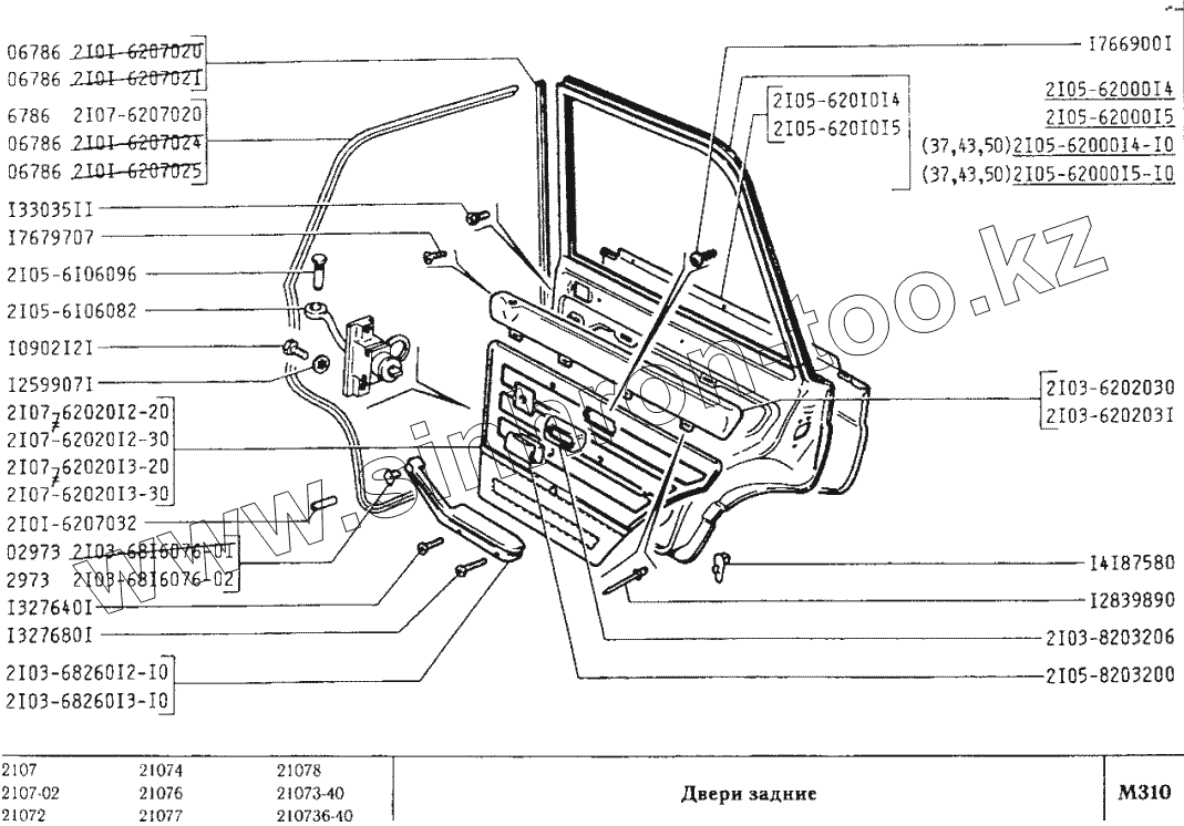 Каталог запасных частей к технике: ВАЗ-2107. Двери задние
