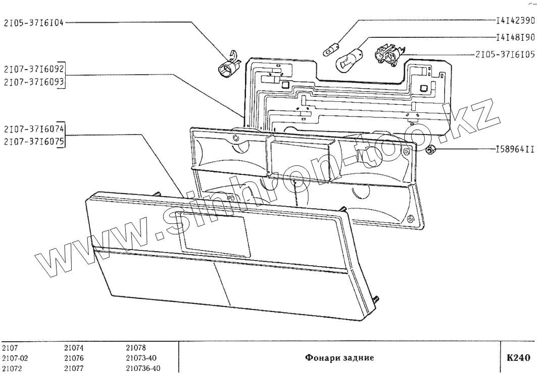 Каталог запасных частей к технике: ВАЗ-2107. Фонари задние
