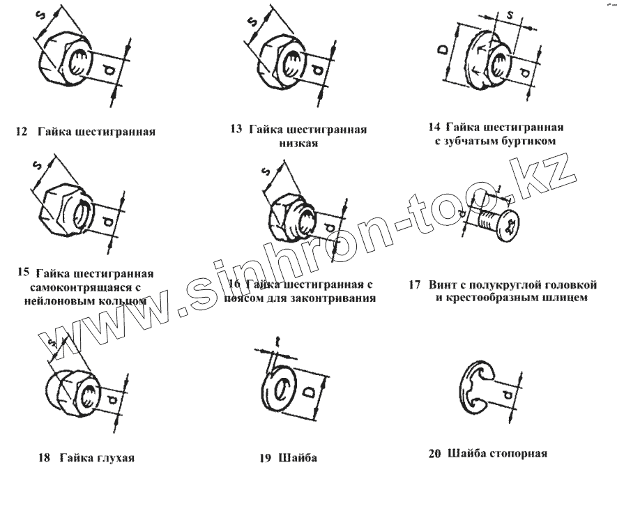 Каталог запасных частей к технике: ВАЗ-2107. Гайки, винты, шайбы