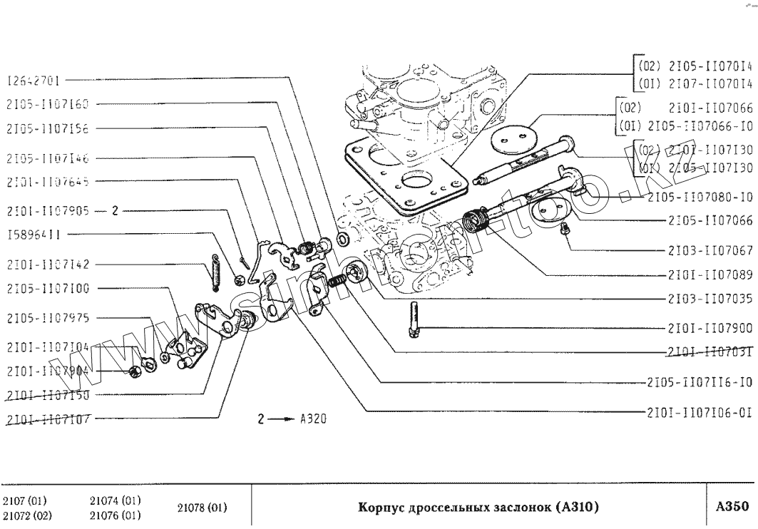 Каталог запасных частей к технике: ВАЗ-2107. Корпус дроссельных заслонок