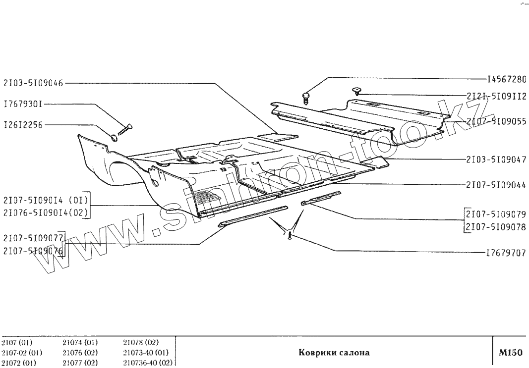 Каталог запасных частей к технике: ВАЗ-2107. Коврики салона