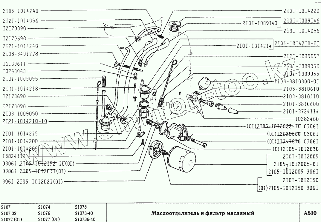 Каталог запасных частей к технике: ВАЗ-2107. Маслоотделитель и фильтр масляный