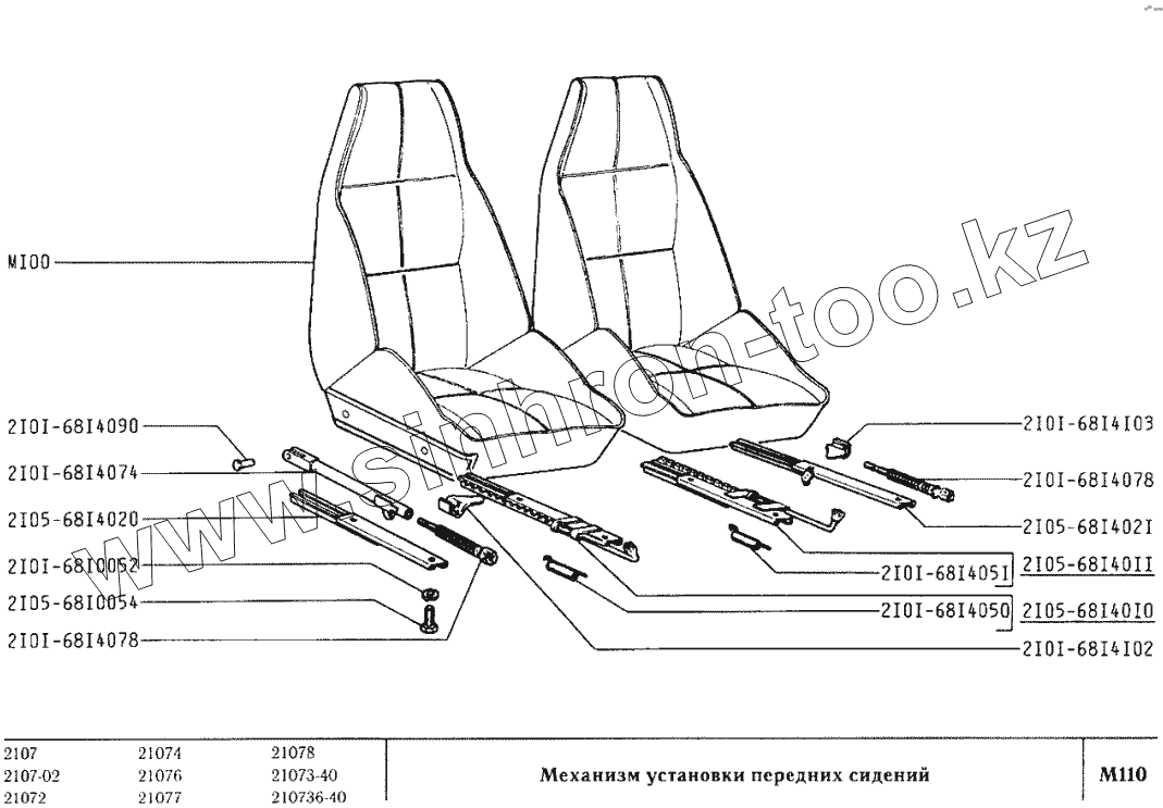 Каталог запасных частей к технике: ВАЗ-2107. Механизм установки передних сидений
