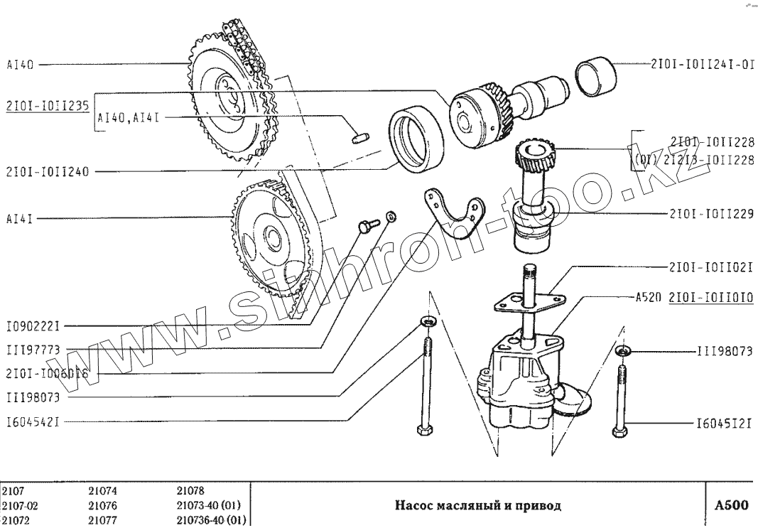 Каталог запасных частей к технике: ВАЗ-2107. Насос масляный и привод