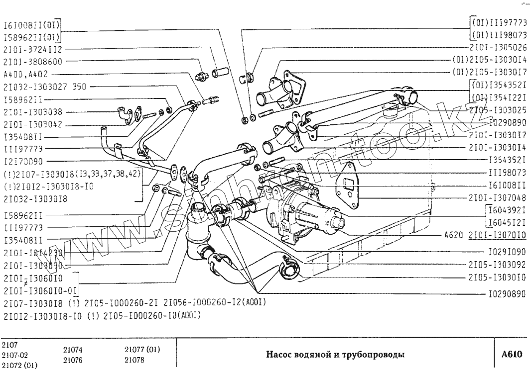 Каталог запасных частей к технике: ВАЗ-2107. Насос водяной и трубопроводы