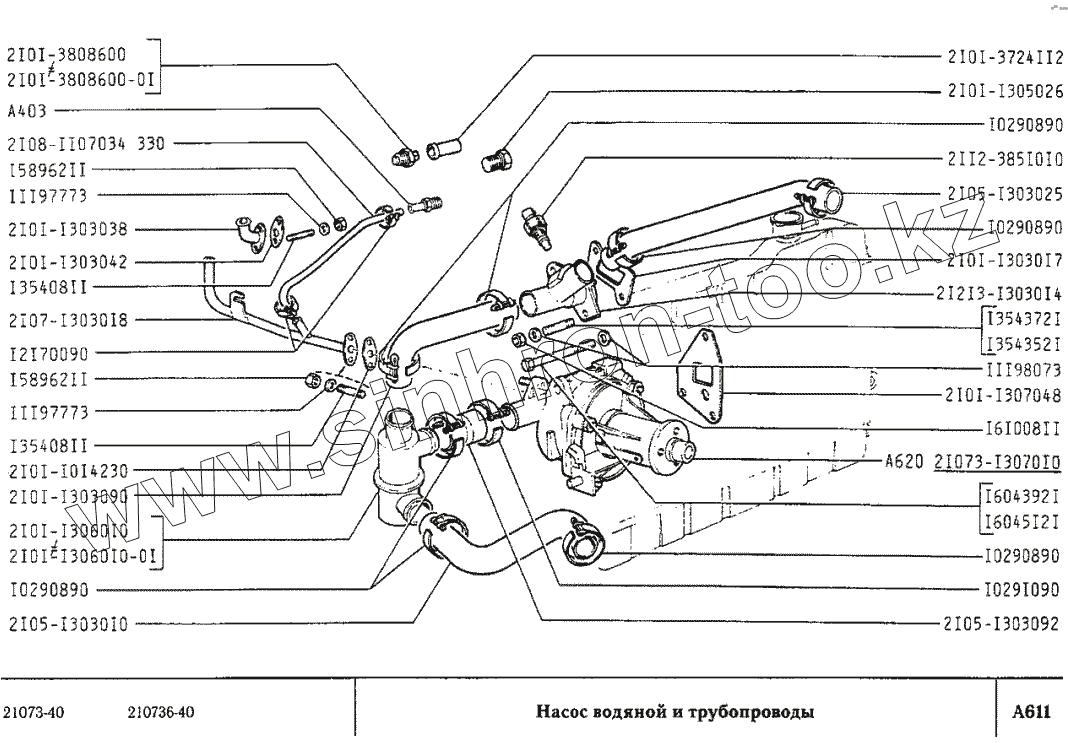 Каталог запасных частей к технике: ВАЗ-2107. Насос водяной и трубопроводы