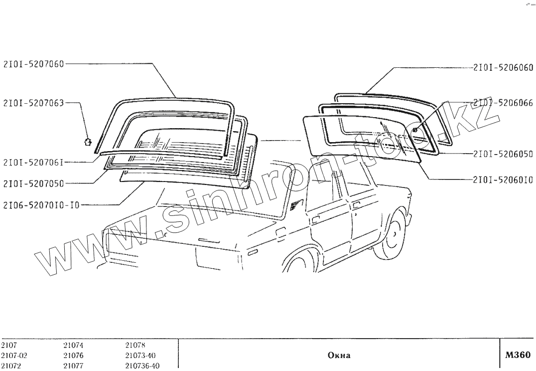 Каталог запасных частей к технике: ВАЗ-2107. Окна